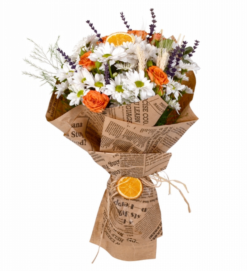 Beyaz Papatyalar ve Turuncu Çardak Gül buketi