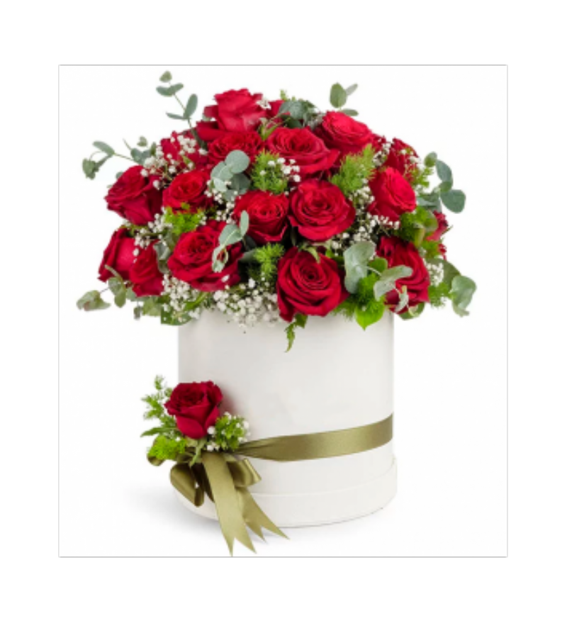 Beyaz Silindir Kutuda Kırmızı Gül Arajmanı