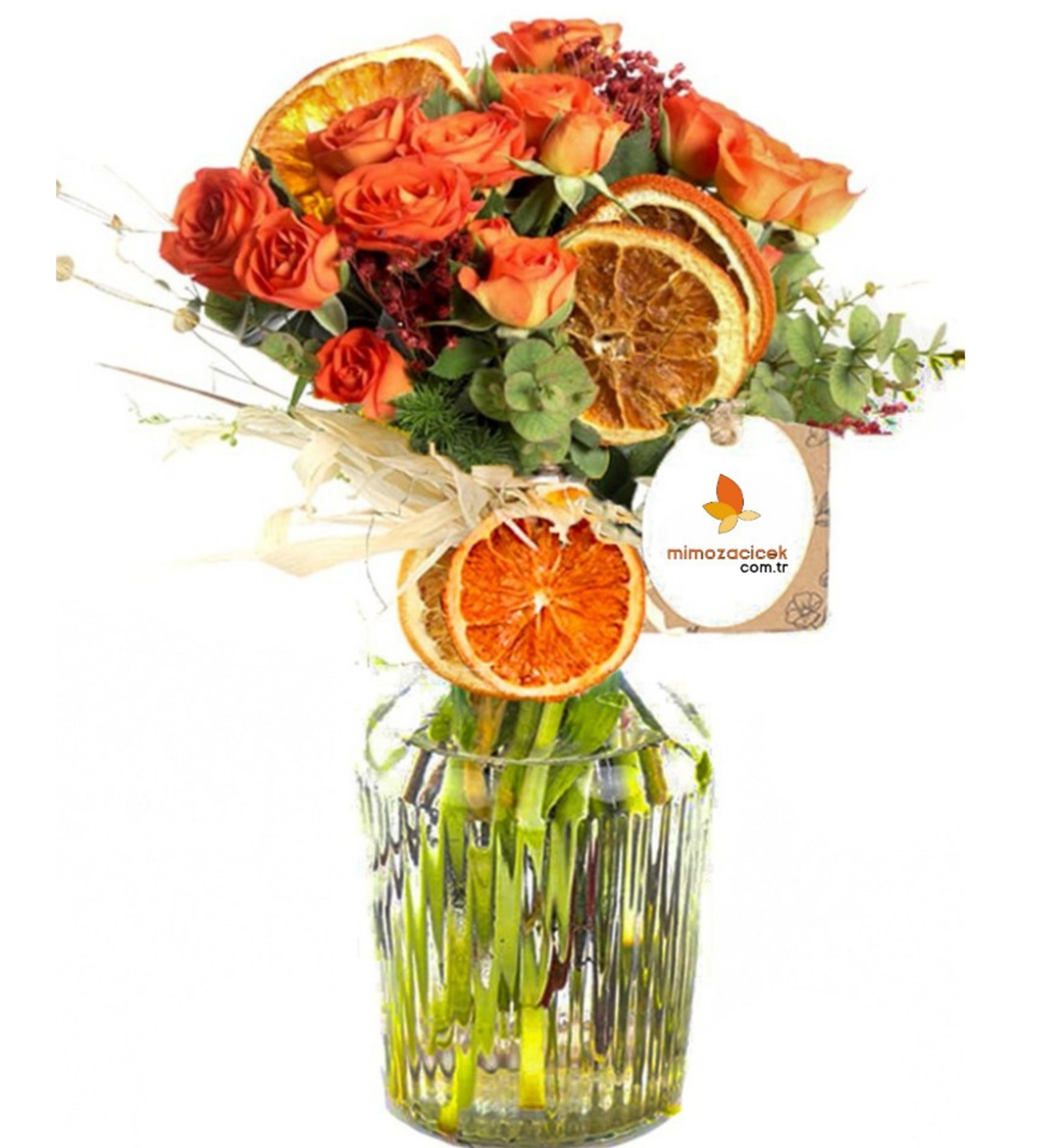 Cam Vazoda Turuncu Çardak Gül Arajmanı