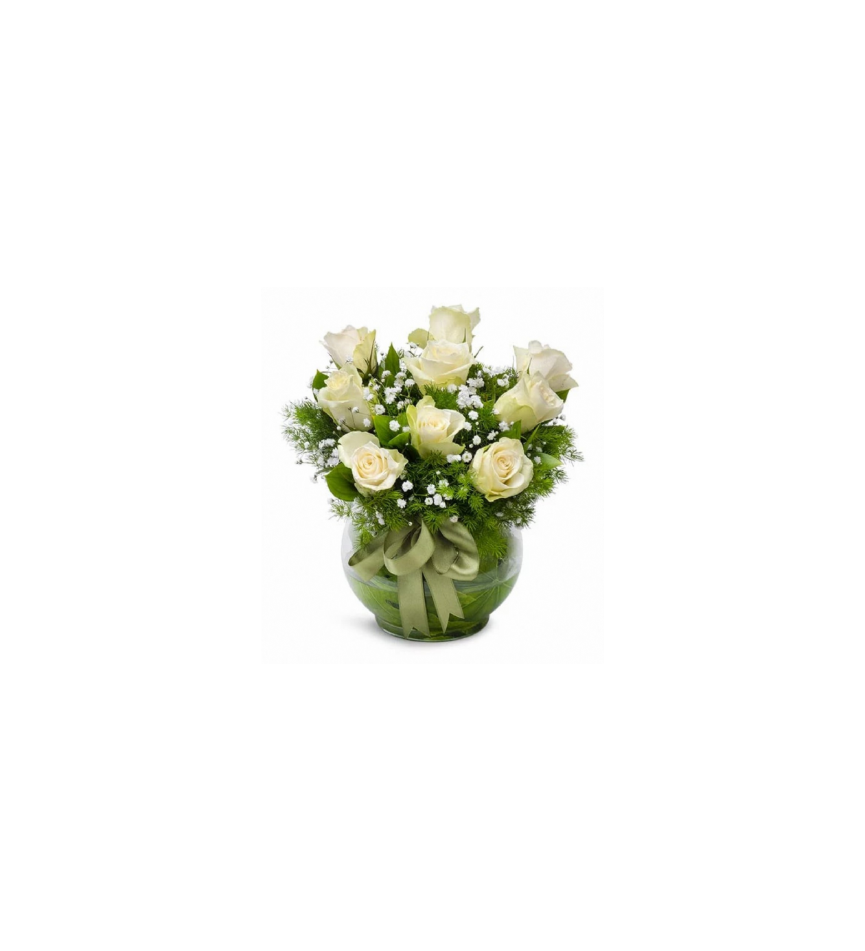 Fanusta Mutluluk ve Zerafet 9 Beyaz Gül Aranjmanı
