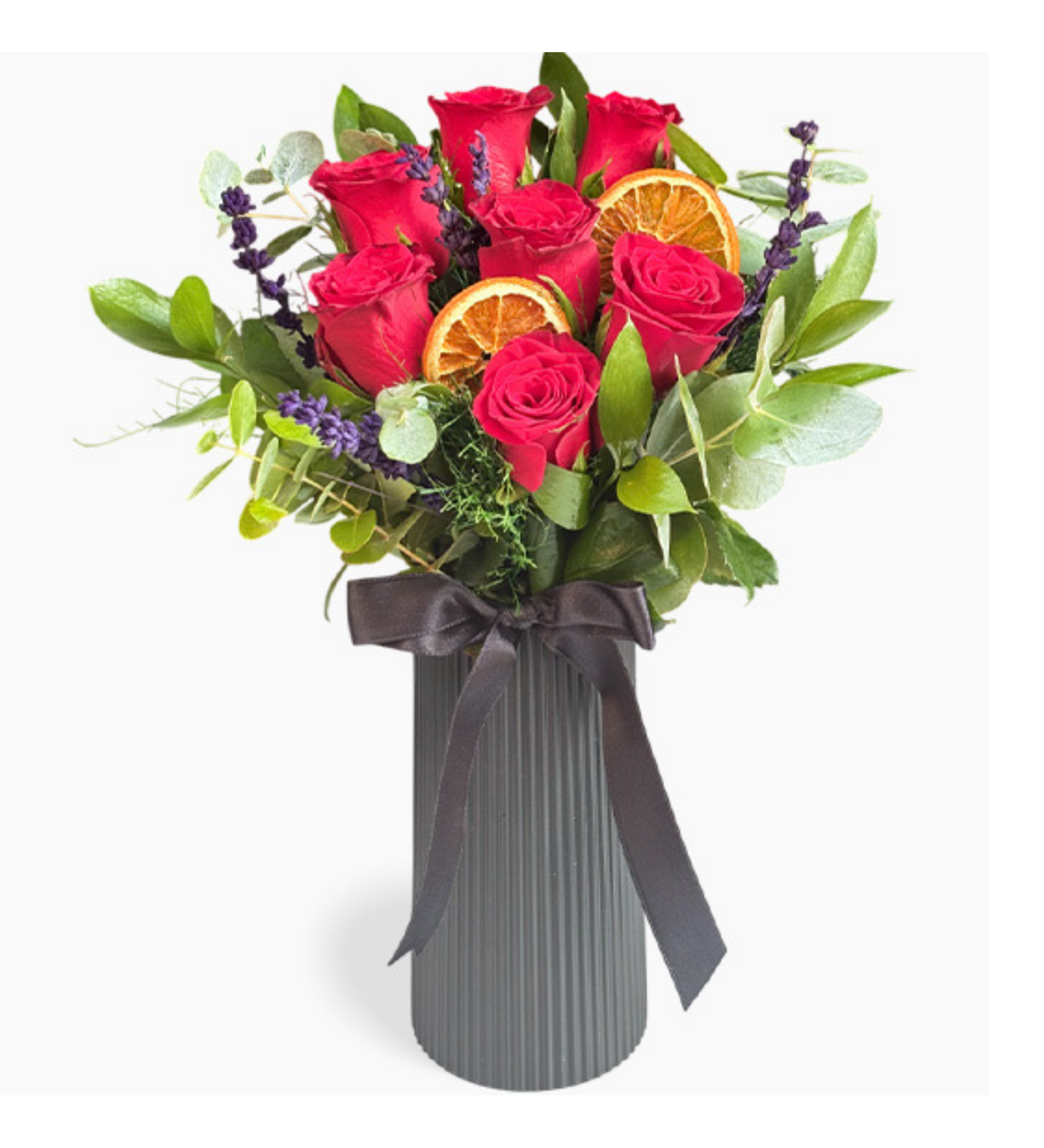 Plastik Siyah Vazoda 7 Adet Kırmızı Gül Arajmanı