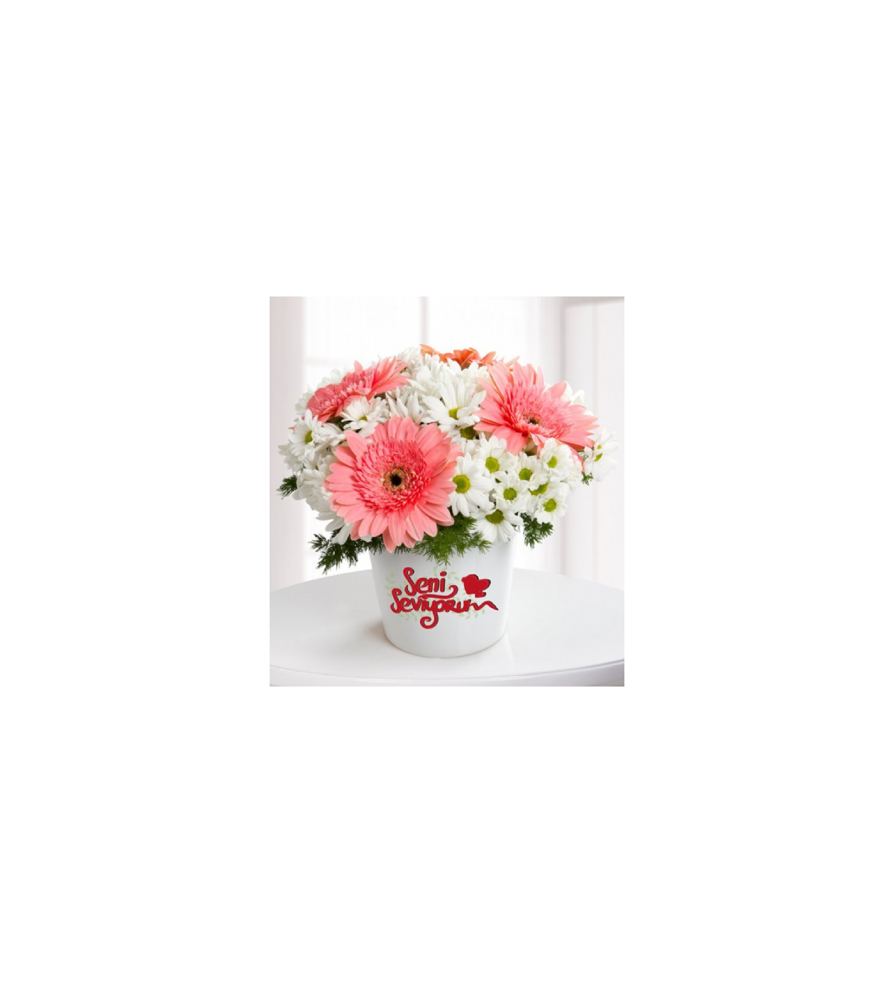 Seni Seviyorum Mesajlı Gerbera ve Papatya Arajmanı
