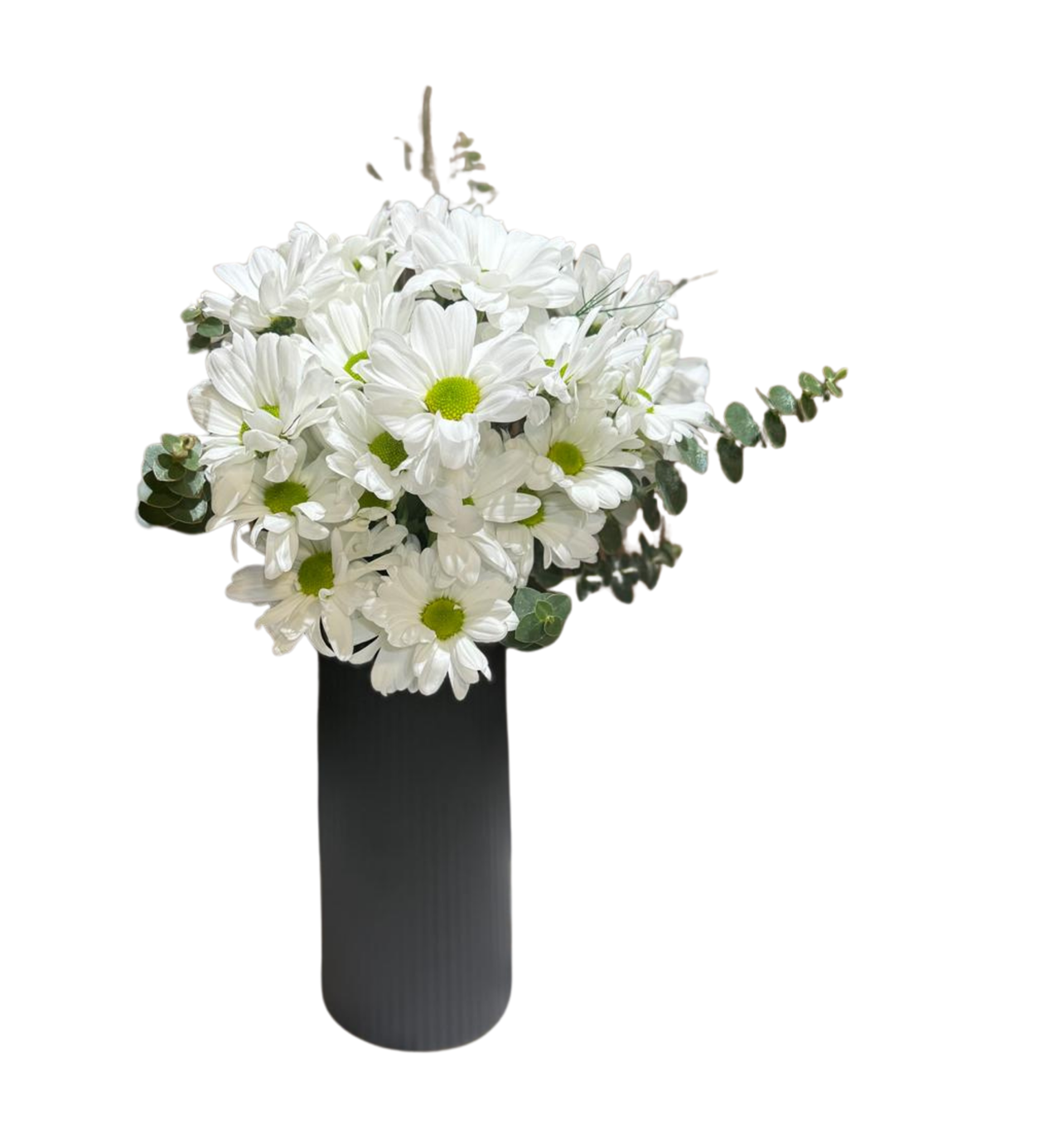 Siyah Çizgili Vazoda Beyaz Papatyalar