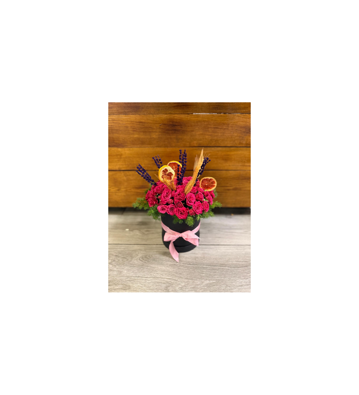 SİYAH SİLİNDİR KUTUDA PEMBE ÇARDAK GÜL ARAJMANI