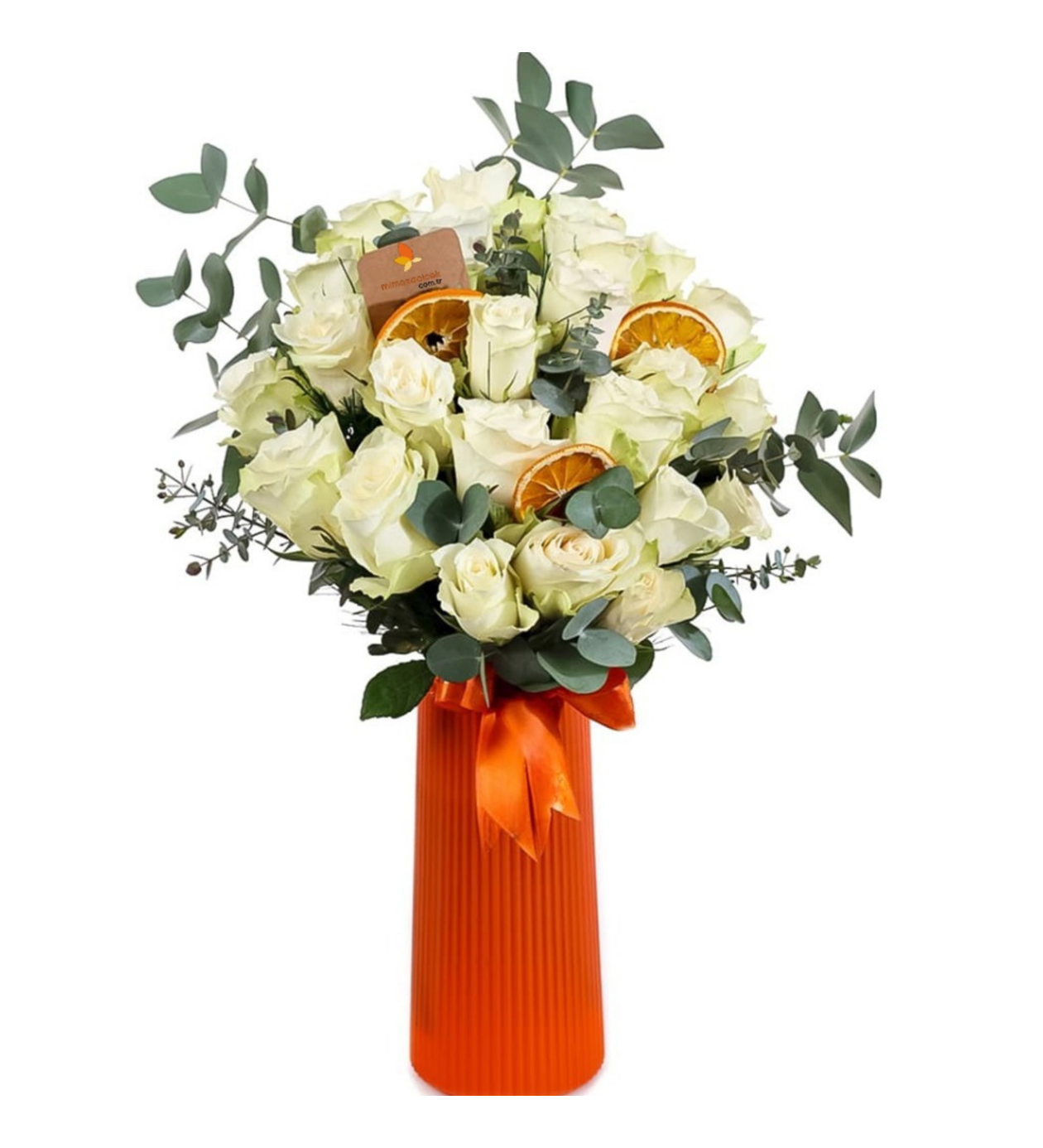 Turuncu Plastik Vazoda 21 Adet Beyaz Gül Arajmanı