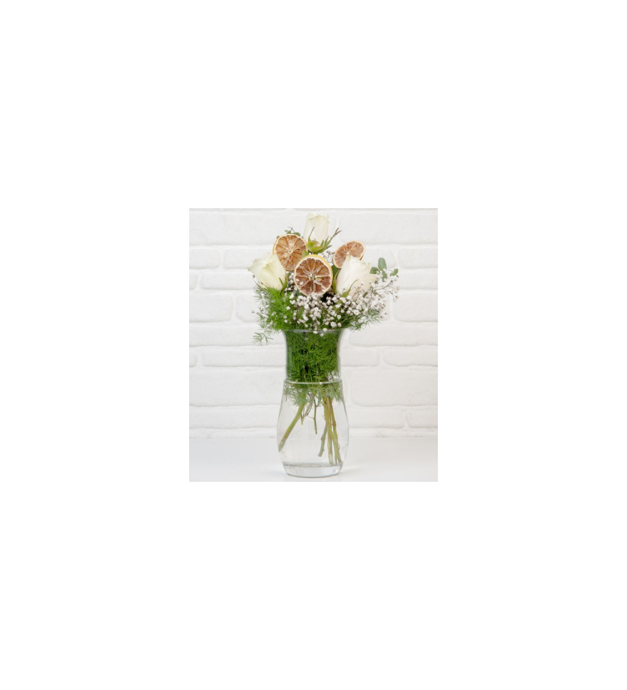 Vazoda 3'lü Beyaz Gül Arajmanı