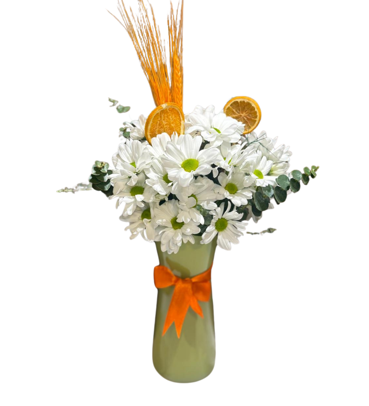 Yeşil Cam Vazoda Beyaz Papatya Arajmanı