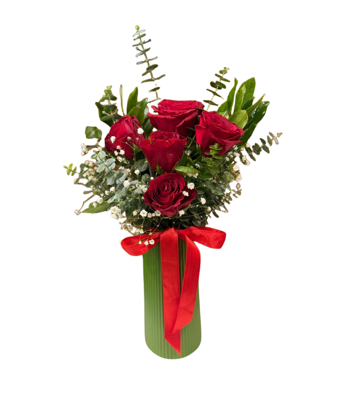 Yeşil Plastik Vazoda 5 Adet Gül Arajmanı